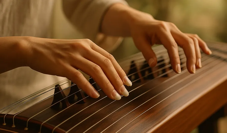 Le 古箏 — GǔZhēng, cithare ancienne aux sonorités limpides et vibrantes, accompagne ici l’instant, sans recherche de virtuosité, mais avec le désir simple de souligner l’émotion du présent, et d’ouvrir un espace de résonance intérieure — 當下的抒情與內省.